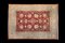 An Amritzar rug, India second half of the 19th Centuy. All over decoration with large flowers in geometric rows of Mogul inspiration on a ruby red background. Main border with large stylized flowers on an aquamarine blue background (defects and restorations)