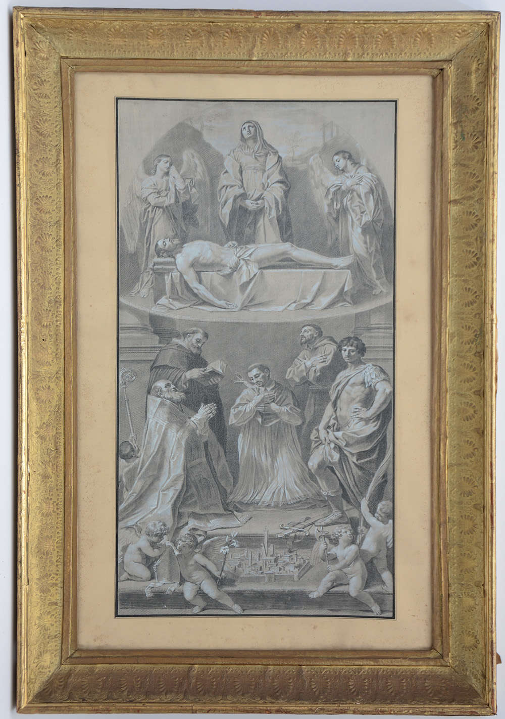 Charcoal and white lead on cream prepared paper applied on another sheet 563x300 circa mm.