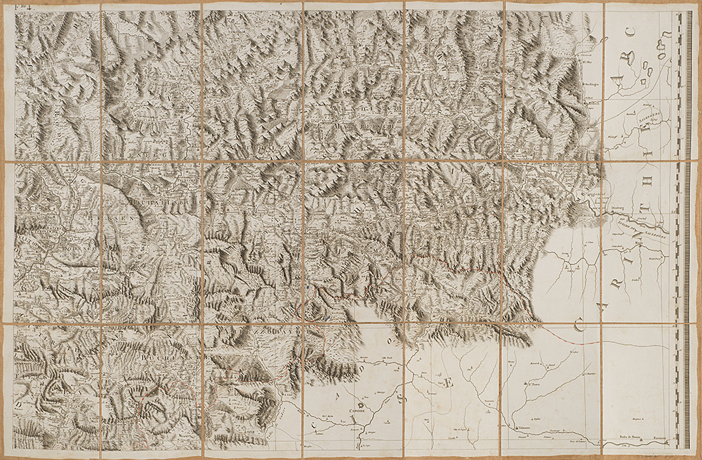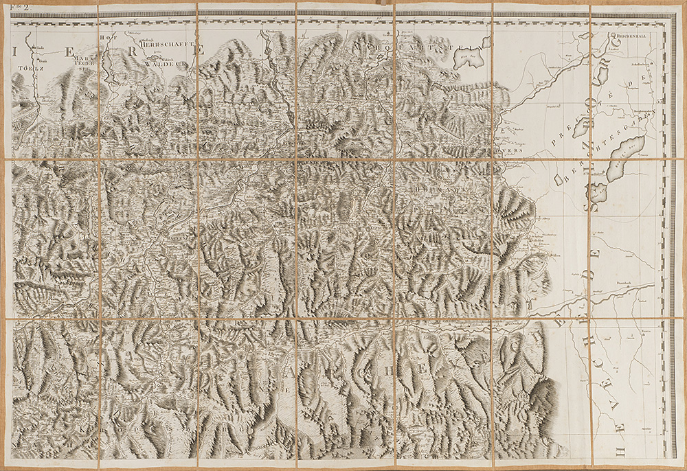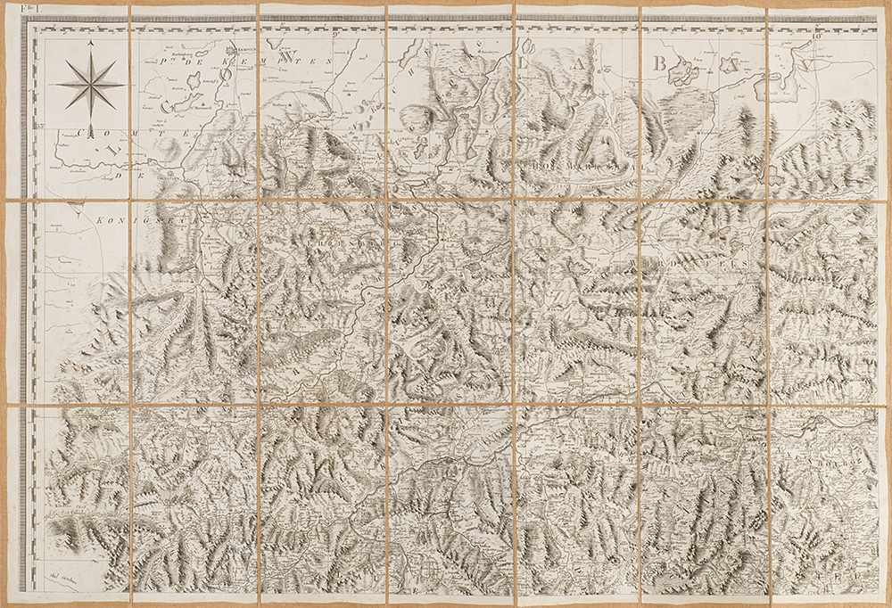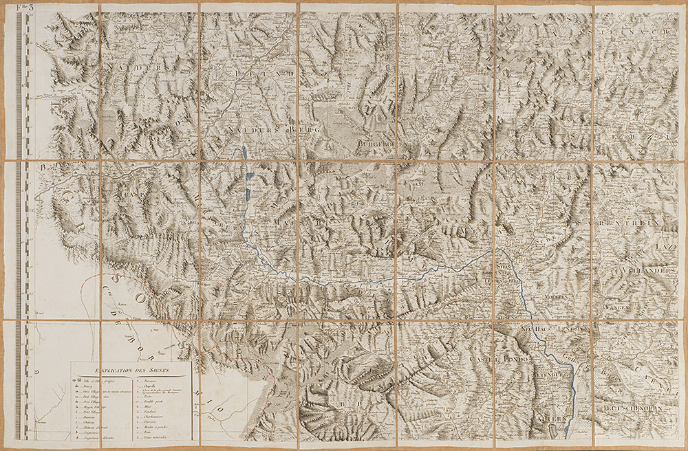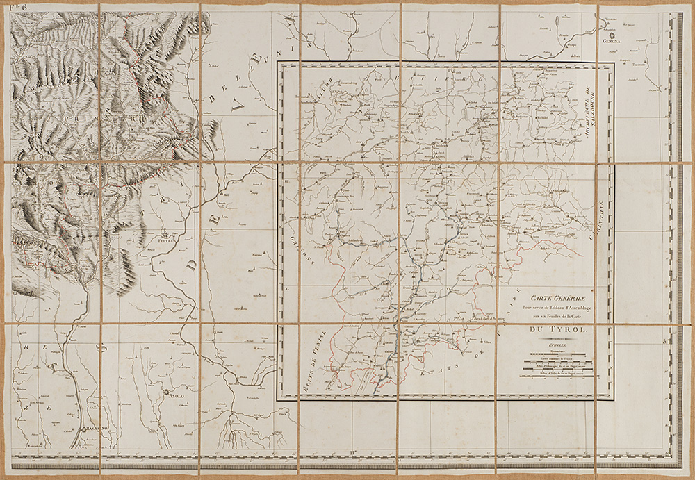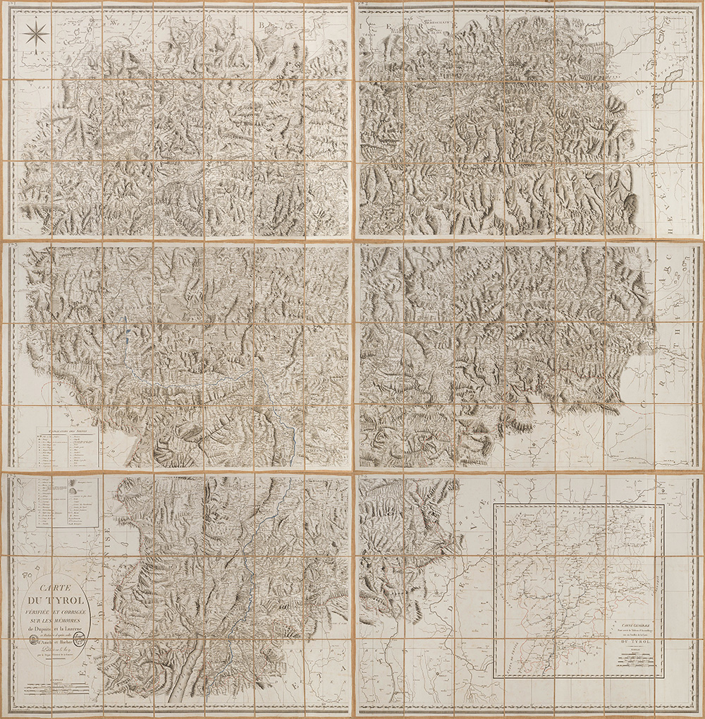 Six folding maps concerning the Tyrol, each printed on more sheets and applied on canvas, published by Goujon, Paris, 19th century (61x90 cm. circa each). With case (defects)