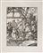Group of three woodcuts from "The Small Passion": "Nativity" "Christ Before Annas" and "Christ Before Caiaphas", first edition after the latin text, laid on an old mounting (127x97 mm. to the borderline). "Nativity" and "Christ Before Annas" are on paper with traces of the watermark "Medium Sized Imperial Orb"