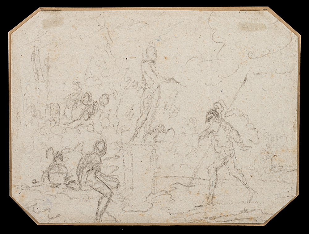 Scuola del secolo XVIIIScena classicaCarboncino su carta grezza mm...