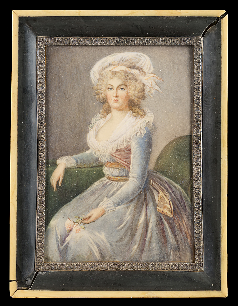 Scuola francese, secolo XIX "Maria Teresa d'Austria" miniatura rettangolare su avorio (cm 12,5x9) In cornice. Inscritta al retro su lastra "Marie Thérése Impèratrice d'Allemagne"
