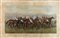 "Our leading jockeys of the day" incisione a colori (cm 68x110) Con autografi stampati dei fantini. In cornice (difetti)