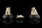 Tre netsuke in avorio raffiguranti animali e personaggi leggendari firmati, con basi in legno