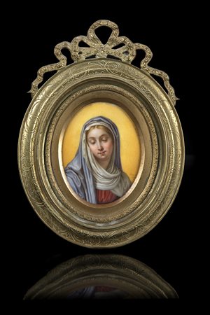 "Virgin" minature on porcelain. Signed and dated 1840 (cm 7x6) Framed