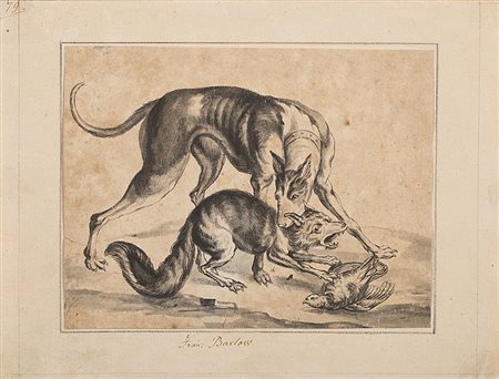 Scuola del secolo XVIII, da Francis BarlowZuffa tra animaliPennello e...