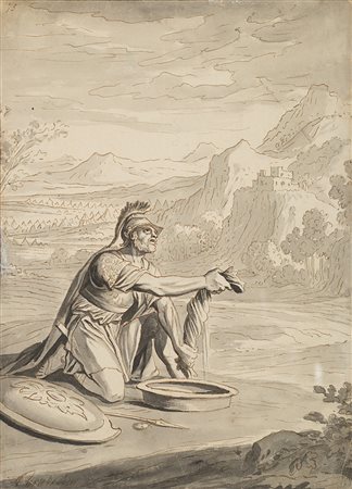 Scuola della fine del secolo XVIIIFigura di eroe antico inginocchiato in un...