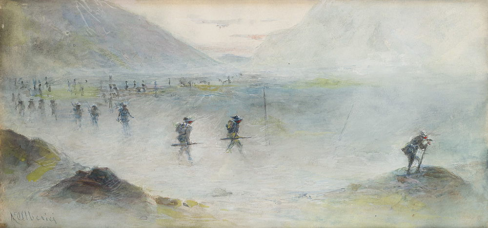 Augusto Alberici (Roma 1846 - 1908)Bersaglieri nell'alto Cardevale e...