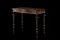 Tavolo di forma sagomata con piano e fascia lastronati in radica, gambe tornite. Capitelli e profili ebanizzati. Secolo XIX (cm 125x80x72) (difetti)