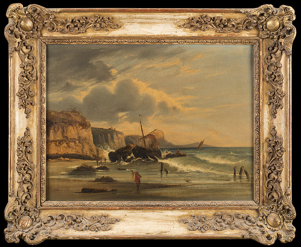 Maestro francese del secolo XIX La burrascaolio su tela cm 30x40Firmato in...