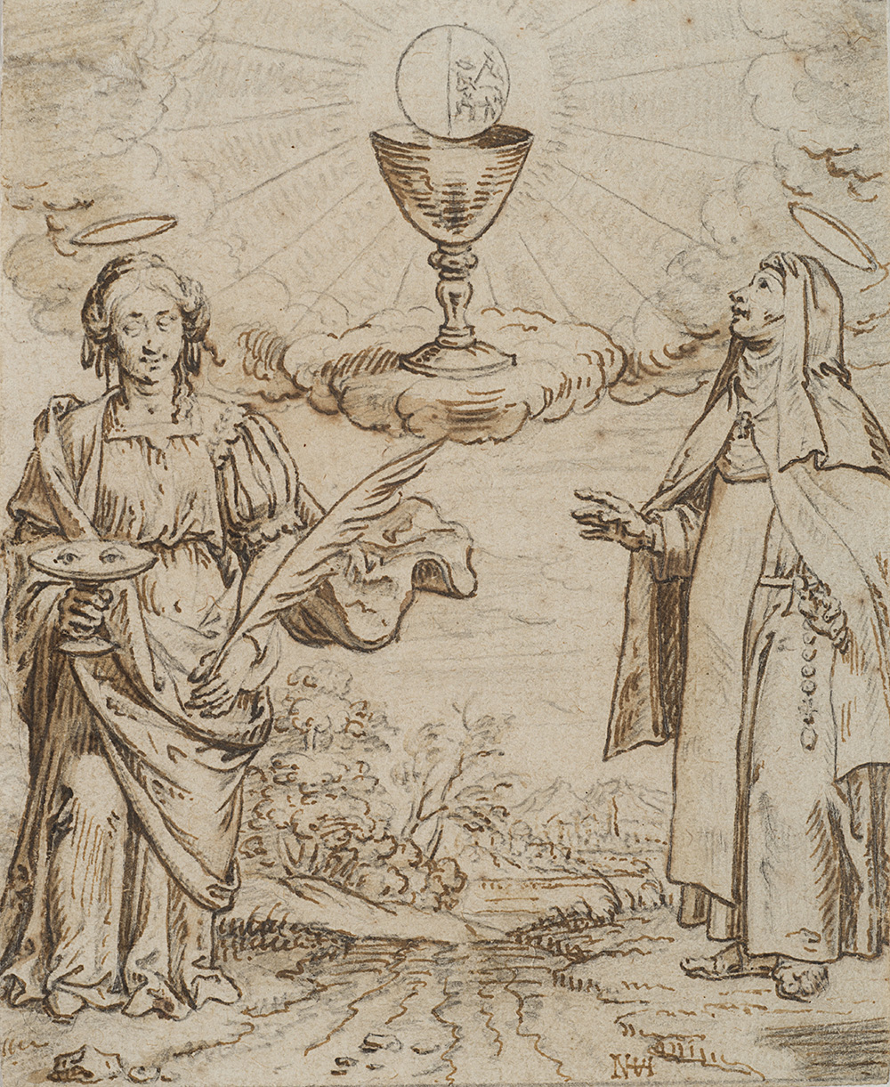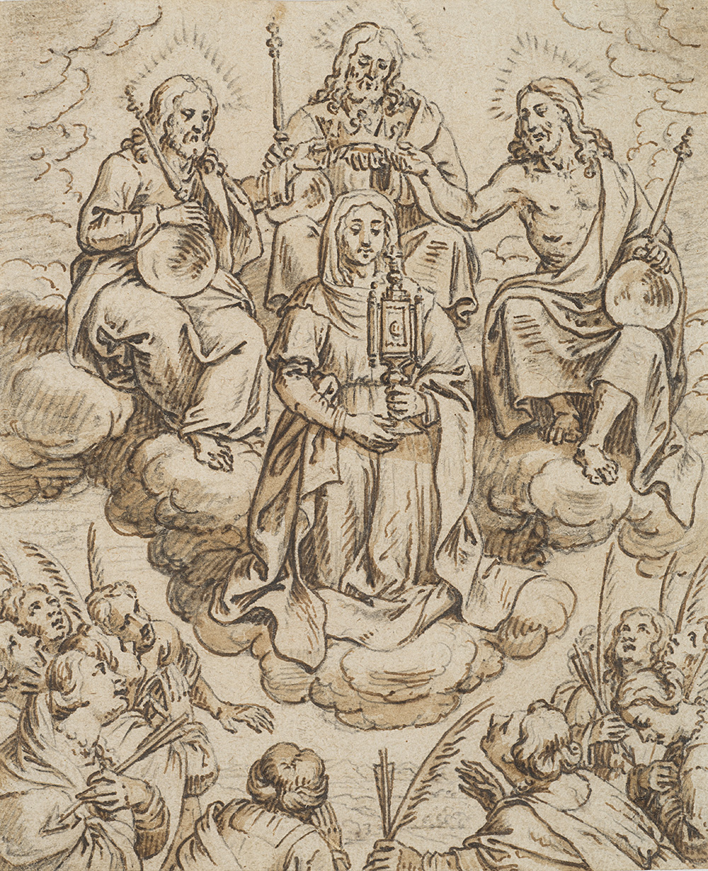 Coronation of the Virgin, Eucharist of a Saint and Allegory of the Eucharist with Saint Lucia and a Saint Nun