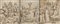 Tre disegni a penna e inchiostro bruno, acquerellati in bruno su tracce a matita nera su carta mm 98x83, mm 95x84, mm 100x80. Le linee di contorno sono state tutte ripassate a stilo per un trasferimento