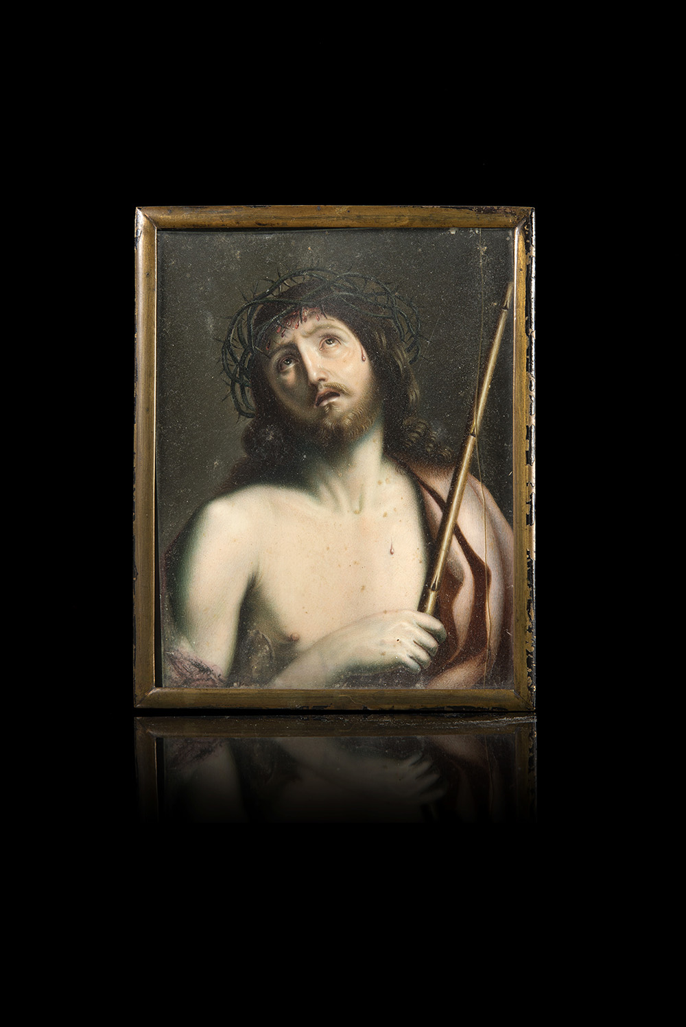 Scuola del secolo XVIII "Cristo con corona di spine" miniatura su avorio (cm 12x9,5) (difetti)