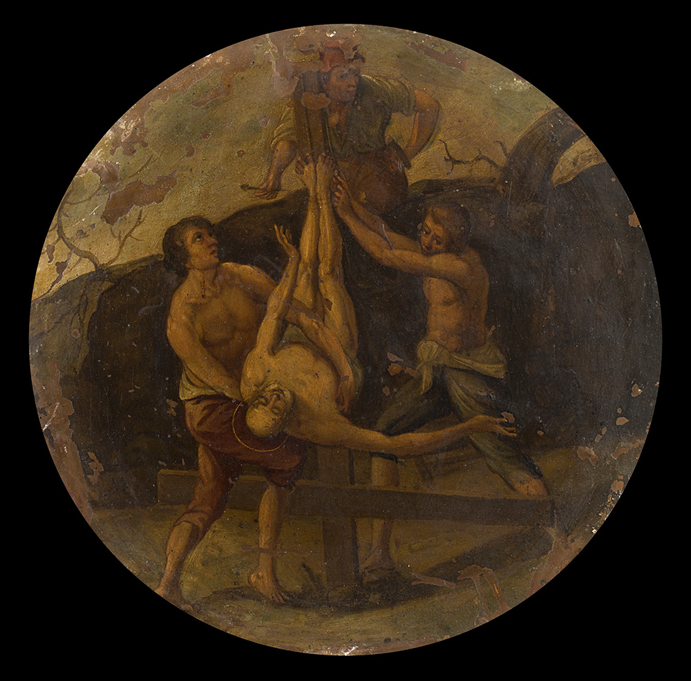 Scuola del secolo XVIIICrocifissione di San PietroOlio su rame tondo cm 23...