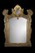 Caminiera in legno intagliato e dorato con cimasa a specchio scolpita a mazzi fioriti e testa leonina che sorregge un festone. Montanti decorati a volti fantastici e mazzi fioriti. Secolo XIX (cm 200x125) (difetti)
