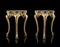 Coppia di piccole consolles in legno intagliato e dorato a volute fogliate e...