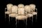 Gruppo di sei poltrone in legno laccato con schienale e fascia di forma mossa...