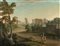 Scuola romana del secolo XVIIIPaesaggio con viandantiOlio su tela cm...