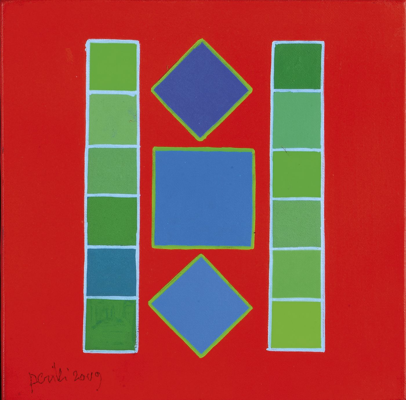 PERILLI ACHILLE Roma 1927 "Composizione" 2009 20x20 olio su tela Opera firmata e datata in basso a sinistra e al retro con il titolo