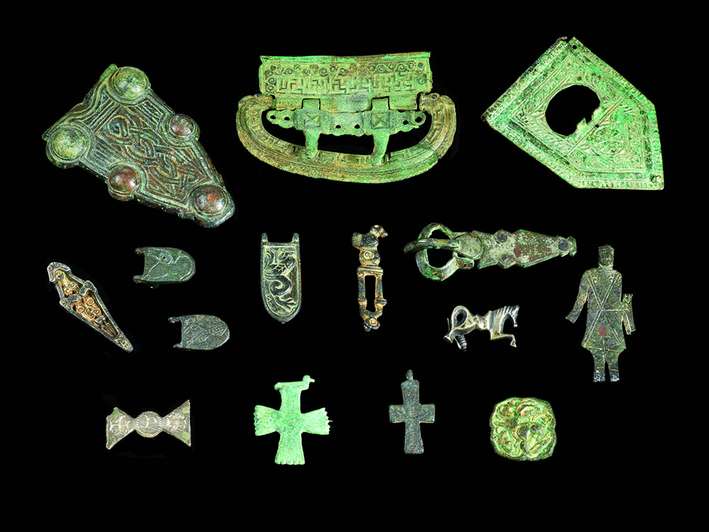 LOTTO DI FIBULE, FIBBIE E CROCI IN BRONZO DATAZIONE: V-VIII sec. d.C. MATERIA...