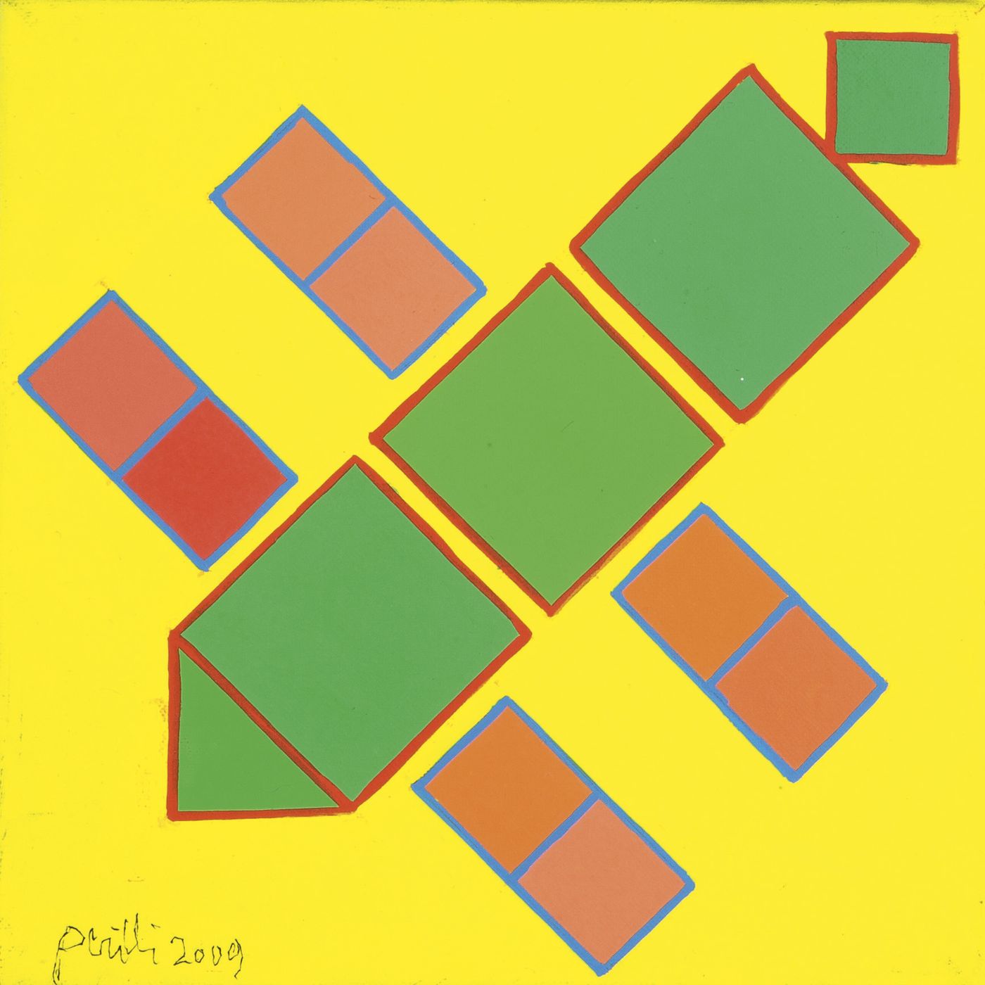 PERILLI ACHILLE Roma 1927 "Composizione" 2009 20x20 olio su tela Opera firmata e datata in basso a sinistra e al retro