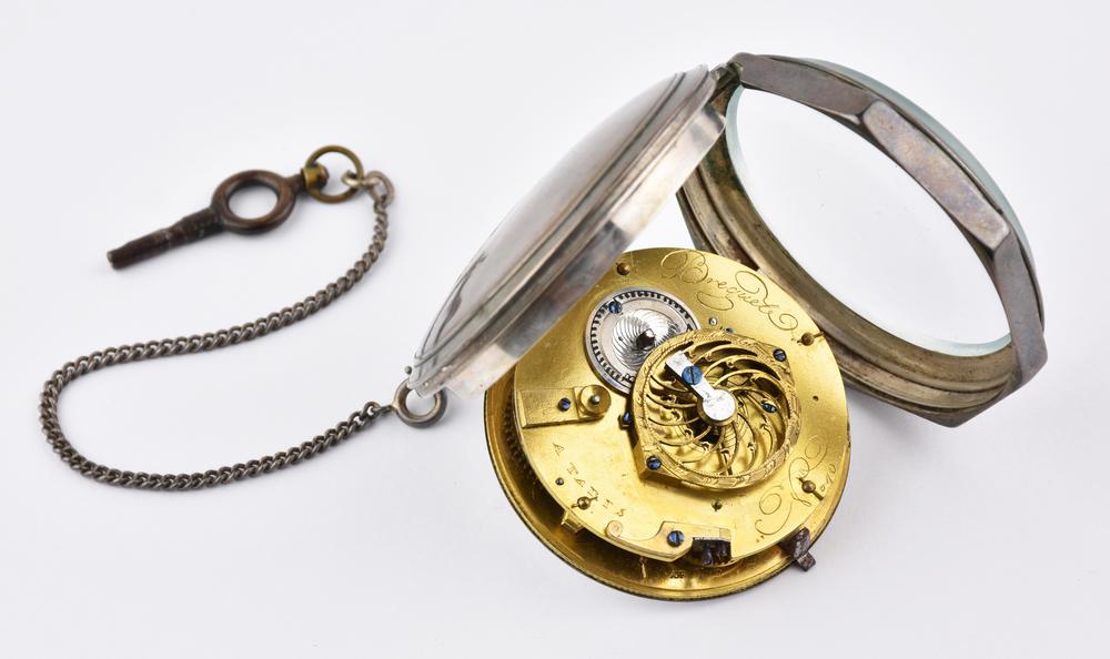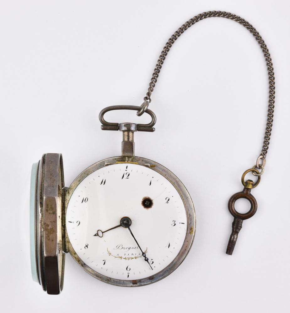 OROLOGIO DA TASCA BREGUET, IN ARGENTO Cassa in argento liscio dal profilo...