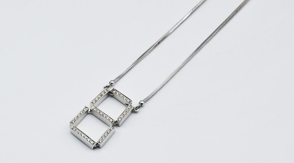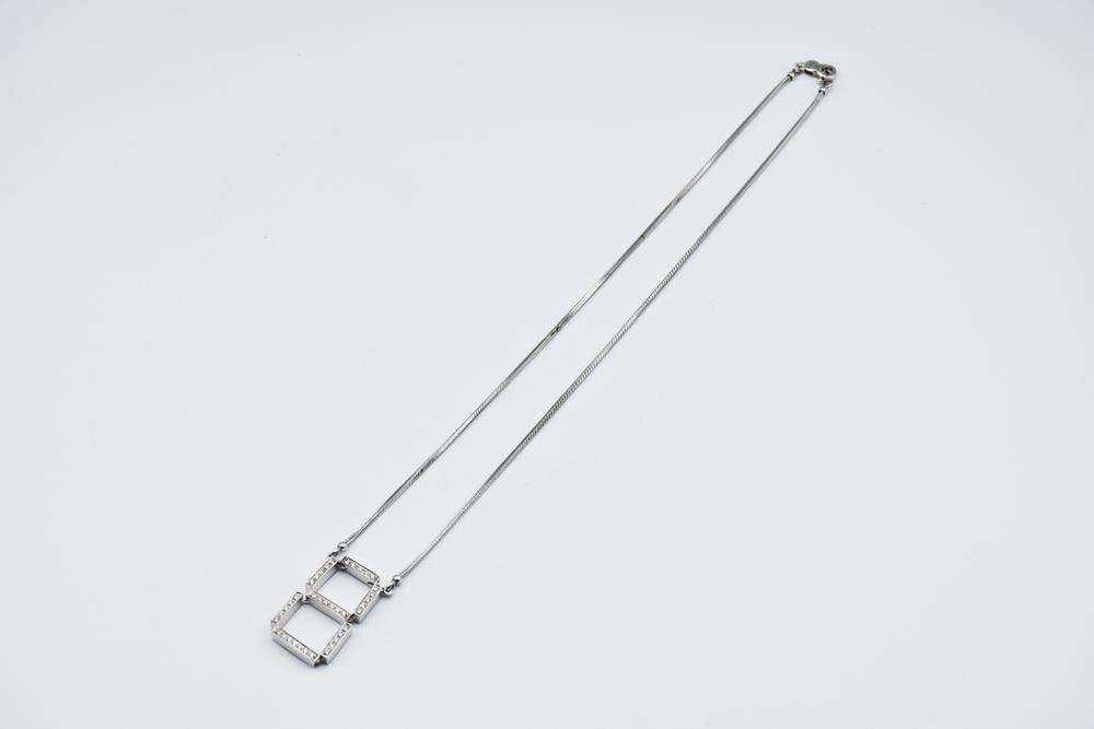 COLLANA IN ORO BIANCO E DIAMANTI la catena a sezione quadrata, al centro un elemento pendente in diamanti in parte snodabile a forma di otto, punzoni 750 e Alfieri St. John, lungh. cm 47 DIAMOND AND WHITE GOLD NECKLACE