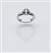 ANELLO IN ORO BIANCO E DIAMANTI al centro un diamante taglio brillante rotondo di ct 0.20 circa montato entro un castone a corolla impreziosito da piccoli brillanti, punzone 750 Alfieri St. John, mis. 12.5 DIAMOND AND WHITE GOLD RING