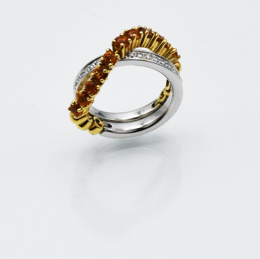 Lotto 246 | Fede in oro bianco incrociata a fede in oro giallo decorata da diamanti e...