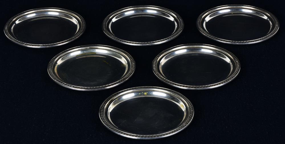 LOTTO COMPOSTO DA 6 SOTTOBICCHIERI IN ARGENTO diam cm 11 peso totale gr 370 A SET OF SIX SILVER UNDER GLASS PLATE diam. 4,33 weight 0,82