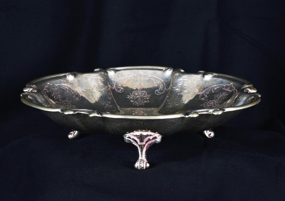ALZATINA IN ARGENTO CESELLATO E SBALZATO CON PIEDINI h cm 5 - diam cm 19,5 gr...
