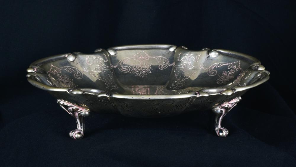 Lotto 264 | ALZATINA IN ARGENTO CESELLATO E SBALZATO CON PIEDINI h cm 5 - diam cm 19,5 gr...