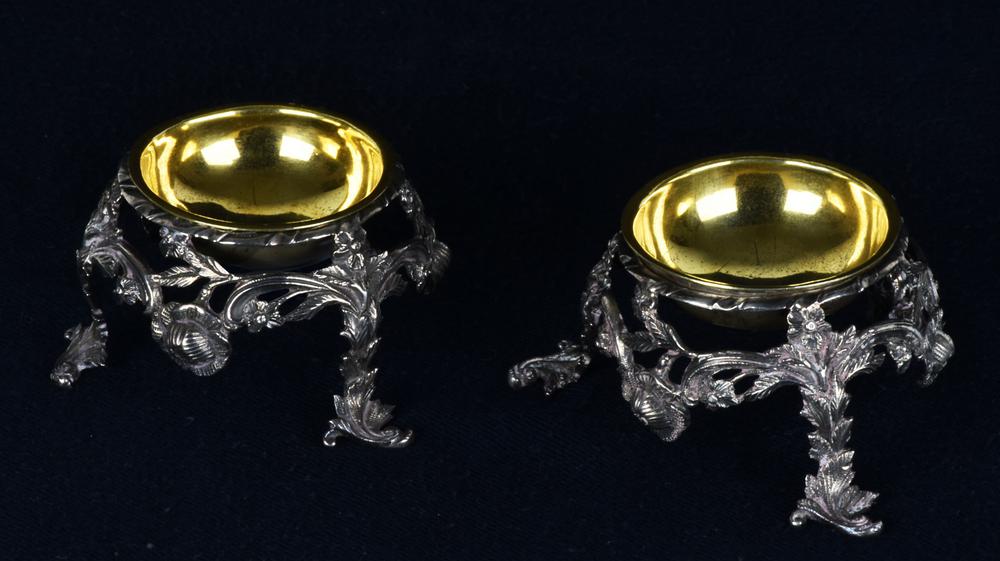 COPPIA DI SALIERE IN ARGENTO 875/1000 punzoni di Hendrik Keyzer, Amsterdam 1763 gr 148 A PAIR OF ANTIQUE SALT CELLAR MADE BY HENDRIK KEYZER AMSTERDAM 1763 weight 0,33 lb.