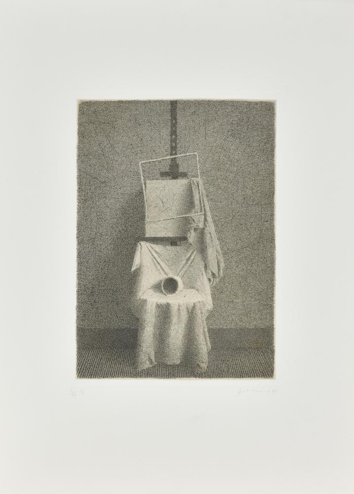 Gianfranco Ferroni SEDIA E CAVALLETTO. 1995 Acquaforte su rame. mm 285x205....