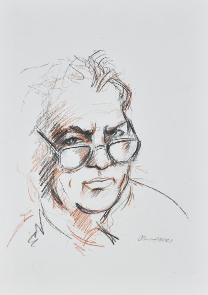 Lotto 442 | Silvano Campeggi RITRATTO DI FEDERICO FELLINI Matita nera e bruna. mm...
