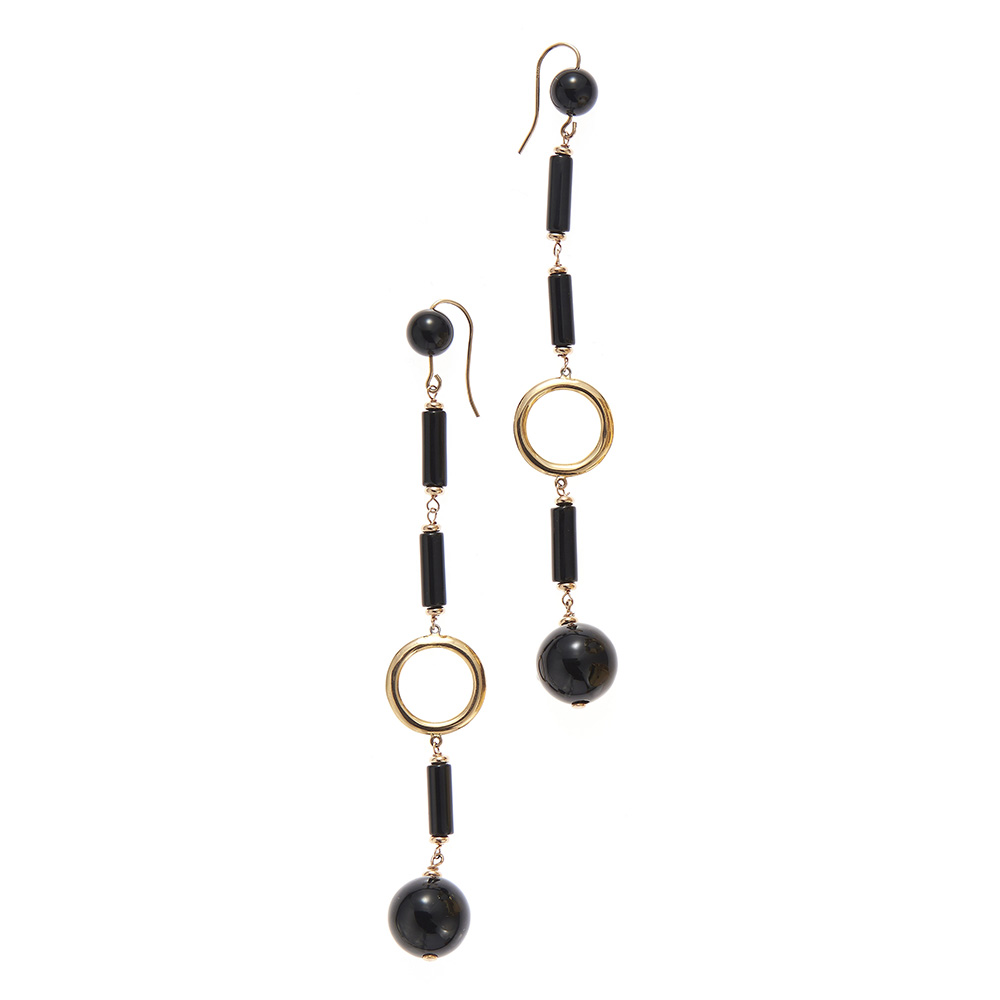 Orecchini pendenti in oro giallo 18kt e onice Con inserti tubolari e sferici...