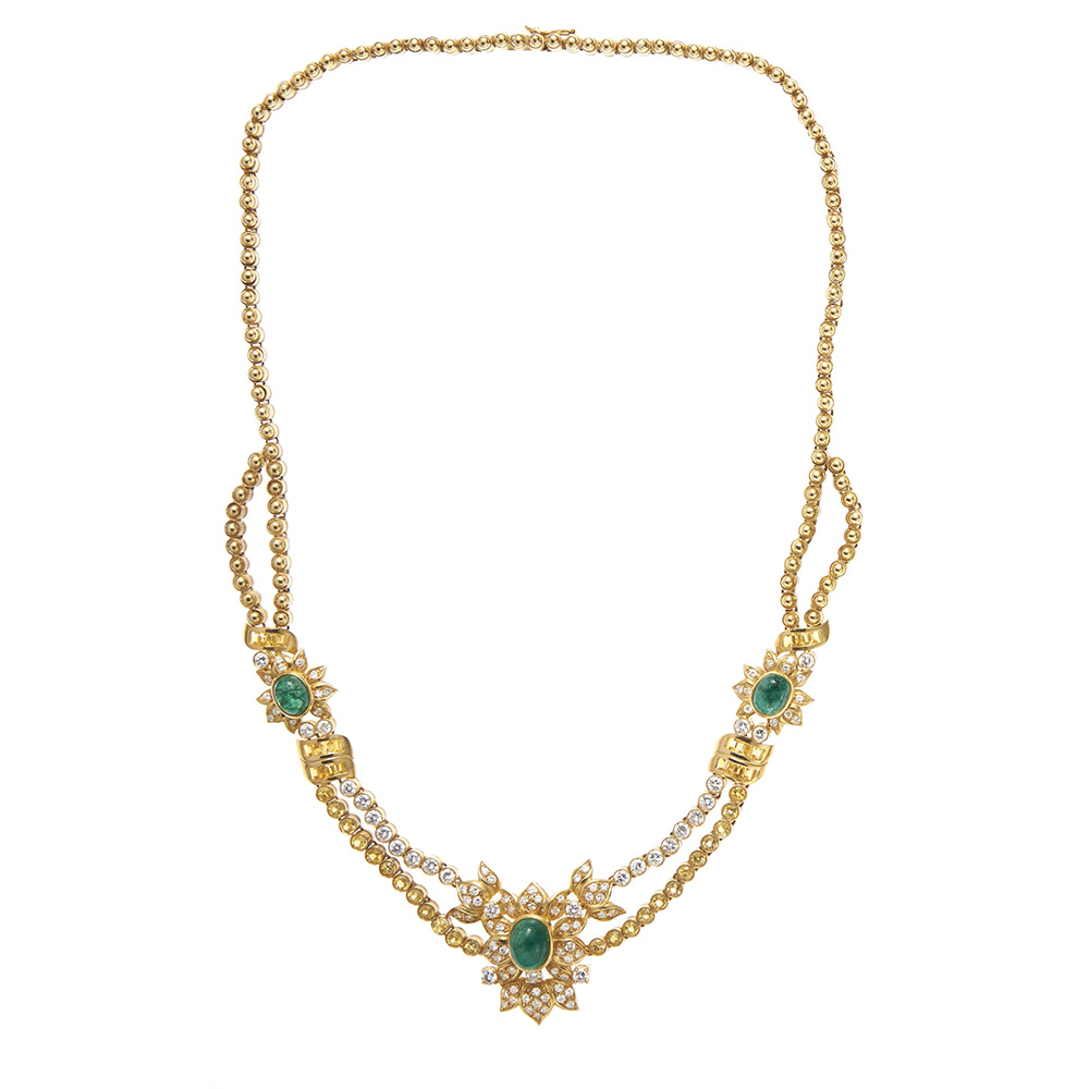 Collana in oro giallo 18kt Realizzata a bavaglino, smeraldi taglio ovale...