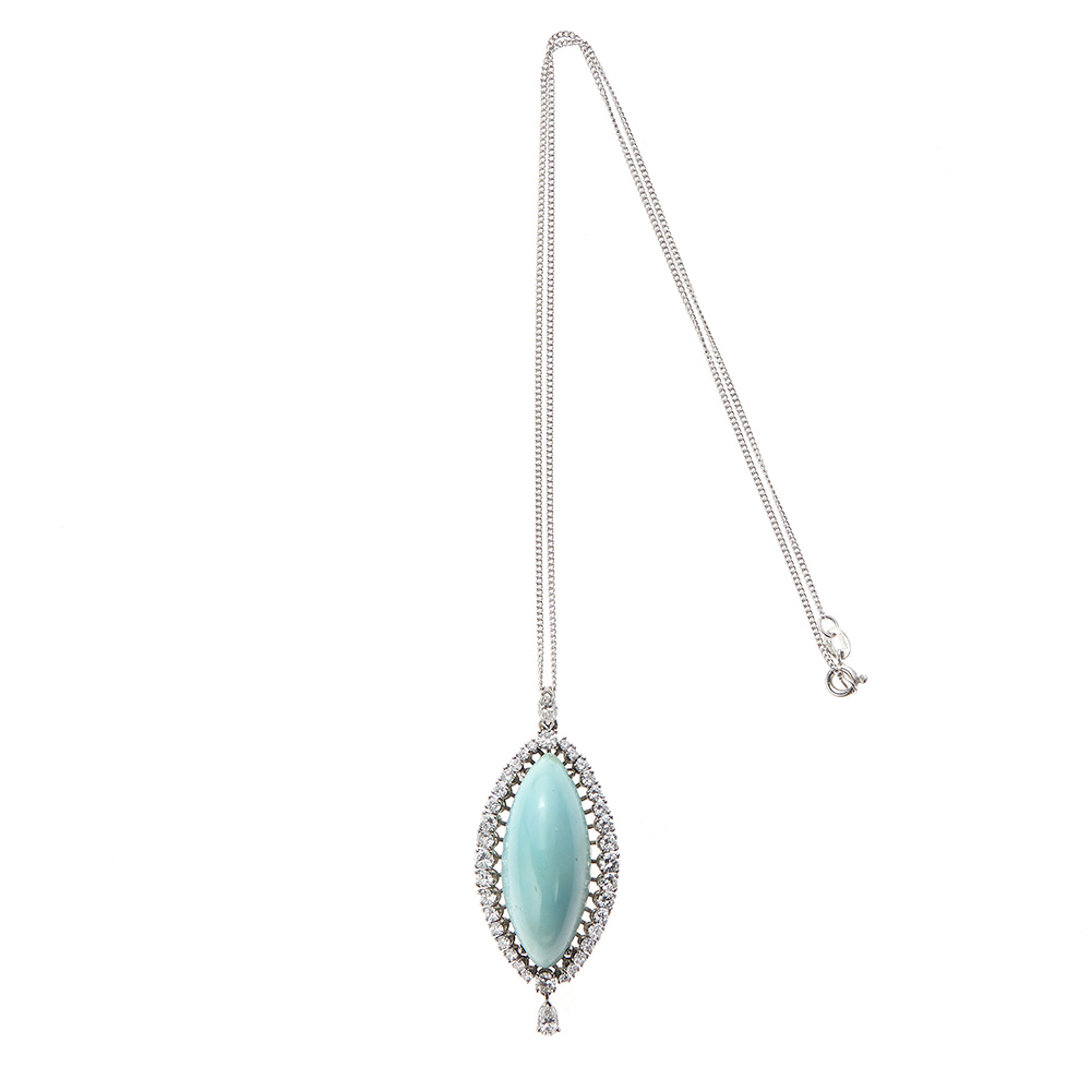 Pendente in oro bianco 18kt Con grande turchese taglio ovale cabochon con...