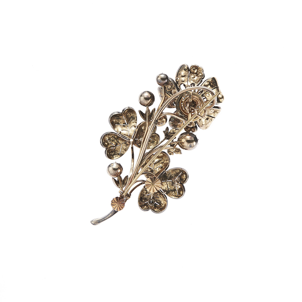 Spilla in argento e oro, inizio XIX secolo Grande ramage con fiore 'en...