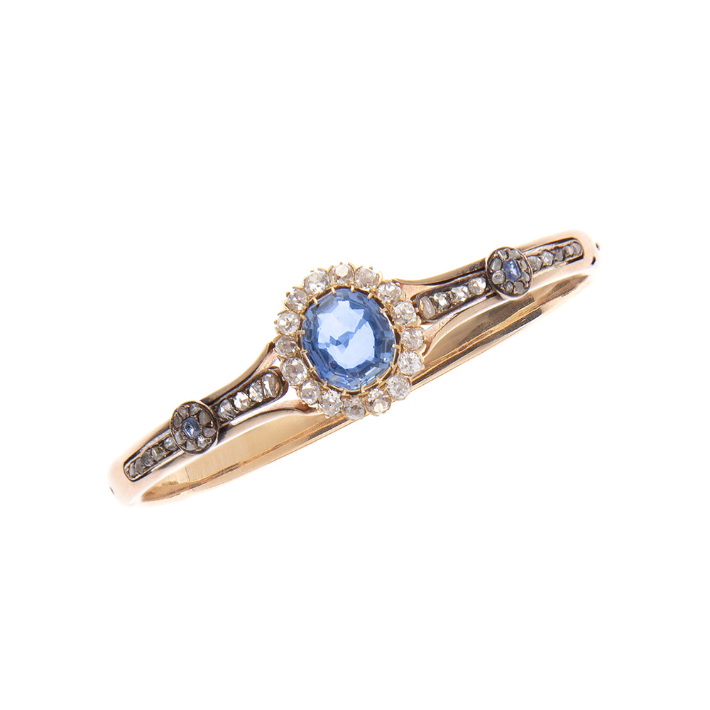 Bracciale, inizio XX secolo In oro giallo centrato da zaffiro taglio ovale di...
