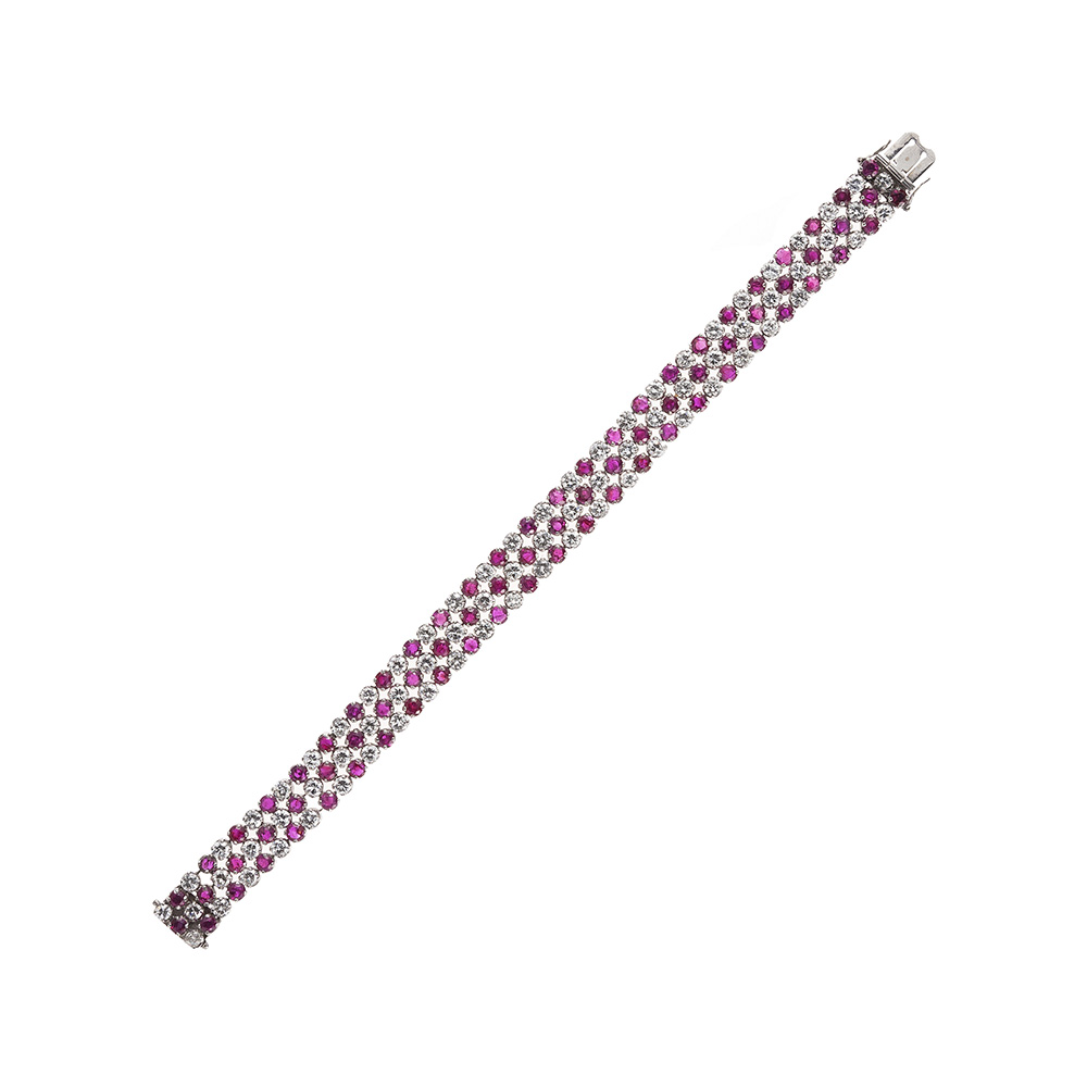 Bracciale in oro bianco 18kt Con rubini taglio rotondo per totale 9 ct circa...