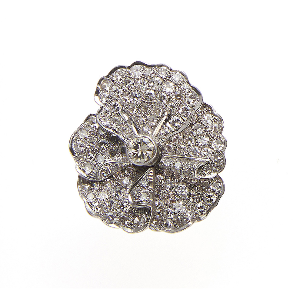 Lotto 73 | Anello in oro bianco 18kt e diamanti A fiore con diamanti taglio huit-huit e...