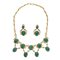 Composta da collana e coppia di orecchini, crisoprasio ovale taglio cabochon, diamanti taglio brillante per totale 0,60 ct circa, decori a serpente