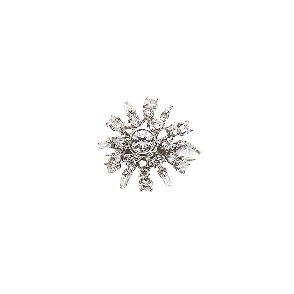 A cupola con diamanti taglio brillante e tapered baguette per totale 1 ct circa