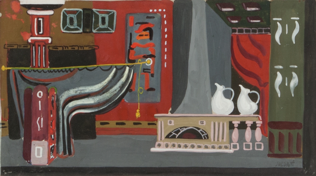 ATANASIO SOLDATI (1896-1953) Senza titolo tempera su carta cm 18x31firmato in...