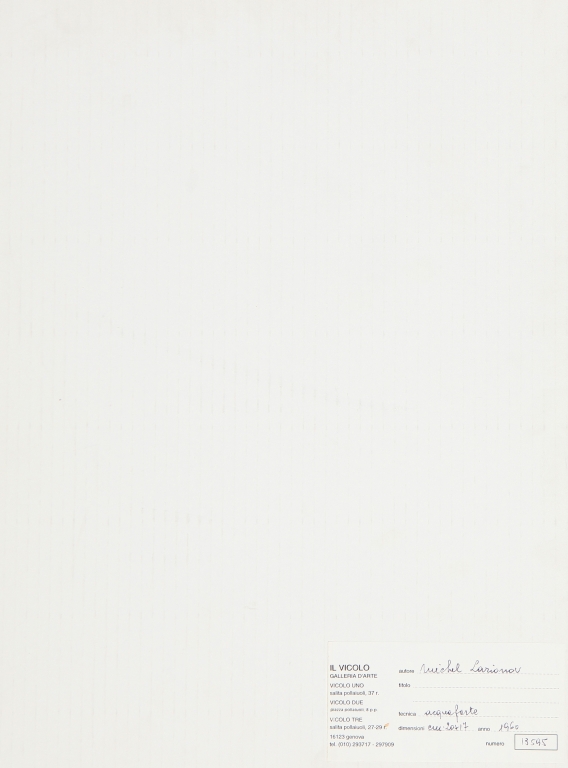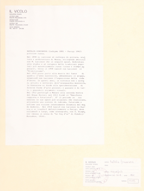sul retro: etichetta de Il Vicolo Galleria d'Arte Genova