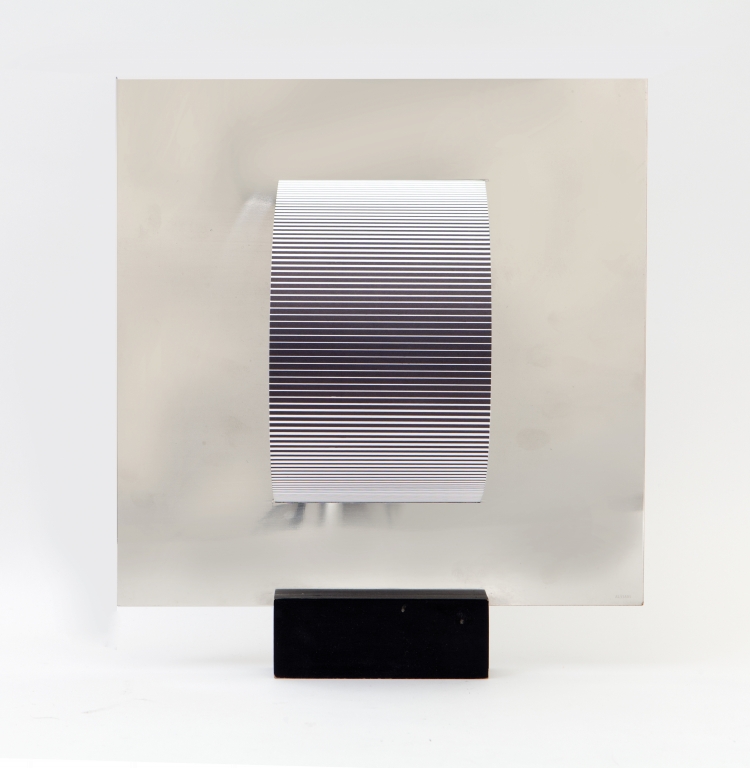 Lotto 65 | GETULIO ALVIANI (1939-2018) Cilindro virtualeacciaio e serigrafia cm 33x33x9...
