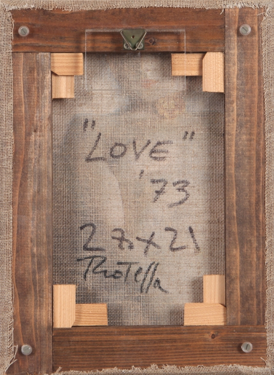 MIMMO ROTELLA (1918-2006) Love 1973effaçage su carta su tela cm 27x21firmato...