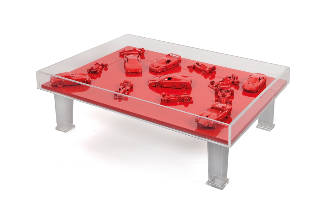 ANONIMO (-) Tavololegno laccato con applicati modellini Ferrari laccati...