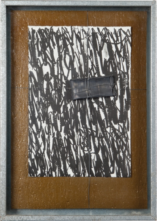 JANNIS KOUNELLIS (1936-2017) Senza titolo piombo filo di ferro su serigrafia...